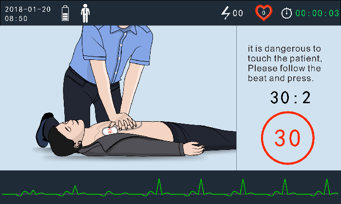 Inicio rápido y listo para usar. Orientación clara interactiva visual y por voz disponible en 16 idiomas internacionales. Almacenamiento de datos de ECG de 24 horas y hasta 1000 eventos.