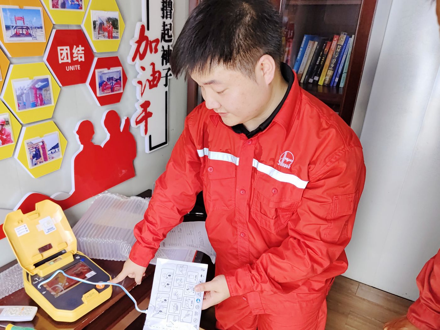 尤为值得一提的是,面对这一新设备,油田工人们展现出极高的学习热情与配合度。安保医疗通过专业培训,工人们迅速掌握AED的操作技能,不仅是对自我生命的负责,更是对同事、对家庭、对社会的一份承诺。