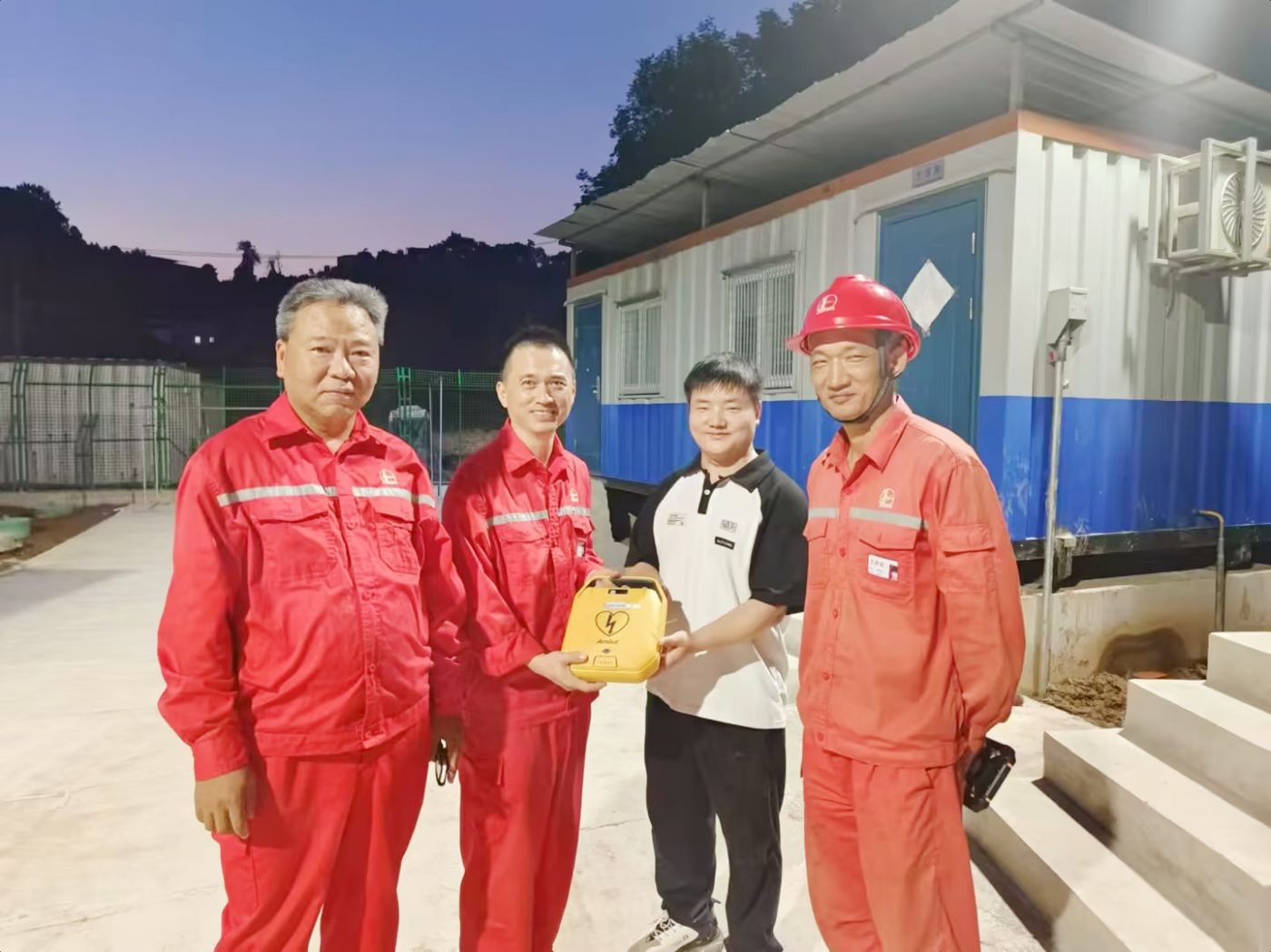 安保医疗工程师团队克服重重困难,深入油田区域将AED一一送达,耗时三天半时间完成设备的安装与调试,确保每台AED都能在最短时间内投入使用。此刻对于工人而言,AED不仅仅是一台设备,更是生命安全的坚实后盾。